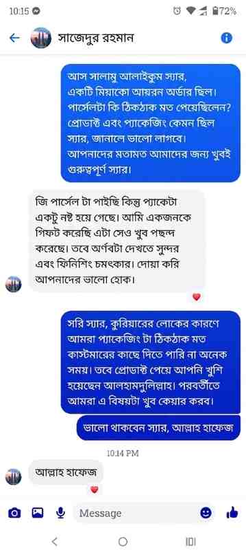 ⭐⭐⭐⭐⭐ “কোয়ালিটি দেখে সত্যিই অবাক! কাপড় একদম সুন্দরভাবে আয়রন হয়। Highly recommended।” – সাদিয়া